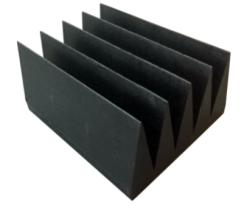 楔形吸波材料可在0.5GHz~40GHz提供優異的低后向散射性能,適用于電磁波大角度入射區域,主要用于錐形暗室的椎形區域,不同型號的楔形吸波材料可用于暗室中錐形區域的不同部位。
