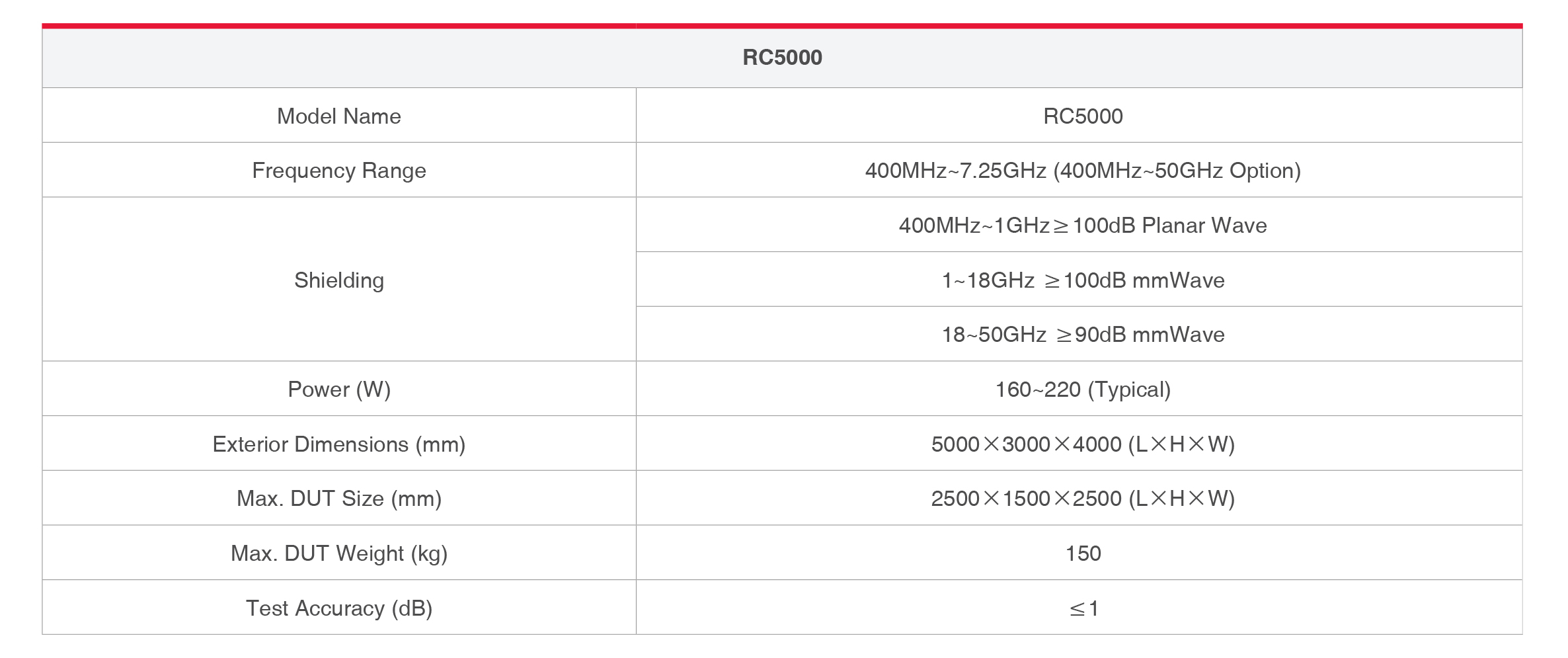 RC5000 reverberation chamber consists of reflective metal walls, positoner, and horizontal and vertical stirrers. The multiple reflection signals generate a multipath reflection environment in the reverberation chamber, through the movement or rotation of the positoner and the stirrers, the electromagnetic field inside the chamber is superimposed from varous directions, resulting in the mathematically representation of plane waves superposition in different directions, thus a quiet zone is realized in the mathematical sense.